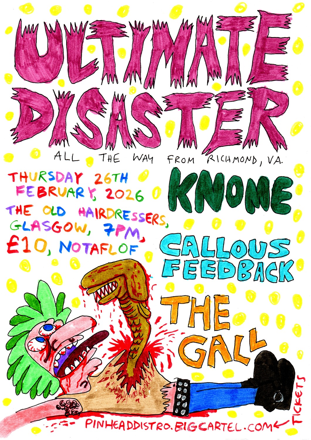 ULTIMATE DISASTER (RICHMOND, VA), KNOME, CALLOUS FEEDBACK, THE GALL - d-beat, punk, hardcore, noise-rock, post-punk, death-rock at The Old Hairdressers. £10 advance. £12 on the door. NOTAFLOF.