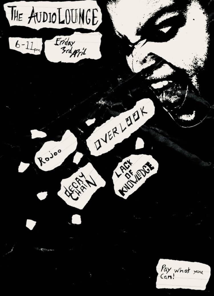 Sound of Community presents its second event: Noise Clash! Featuring Edinburgh Shoegazers OVERLOOK, Glasgow punks DECAY CHAIN, Edinburgh Electronic/rock band ROJOO and Glasgow hardcore/punk band LACK OF KNOWLEDGE. Tickets are pay what you can, cash otd only.