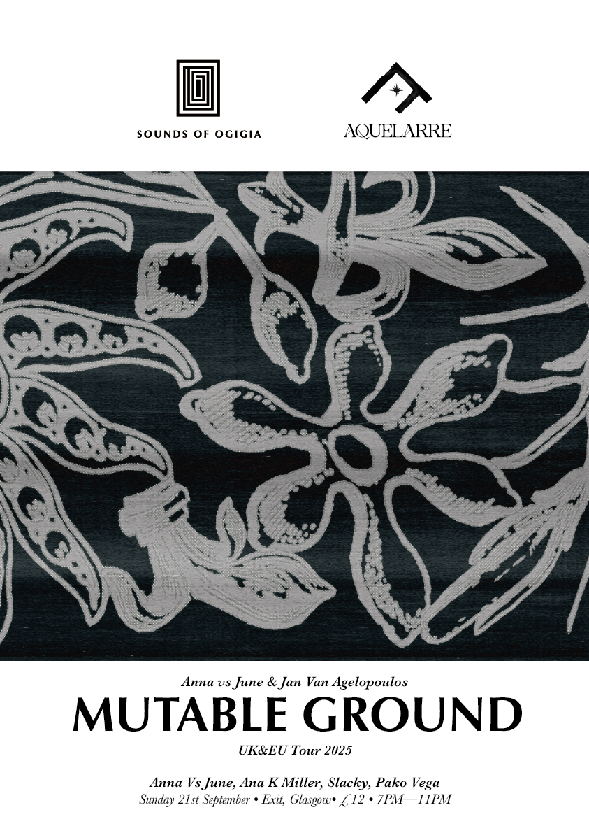 Sounds Of Ogigia joins Aquelarre to celebrate Mutable Ground, the forthcoming release on Sounds of Ogigia with a live performance by Anna Vs June and Jan Van Angelopoulos. Tickets £10