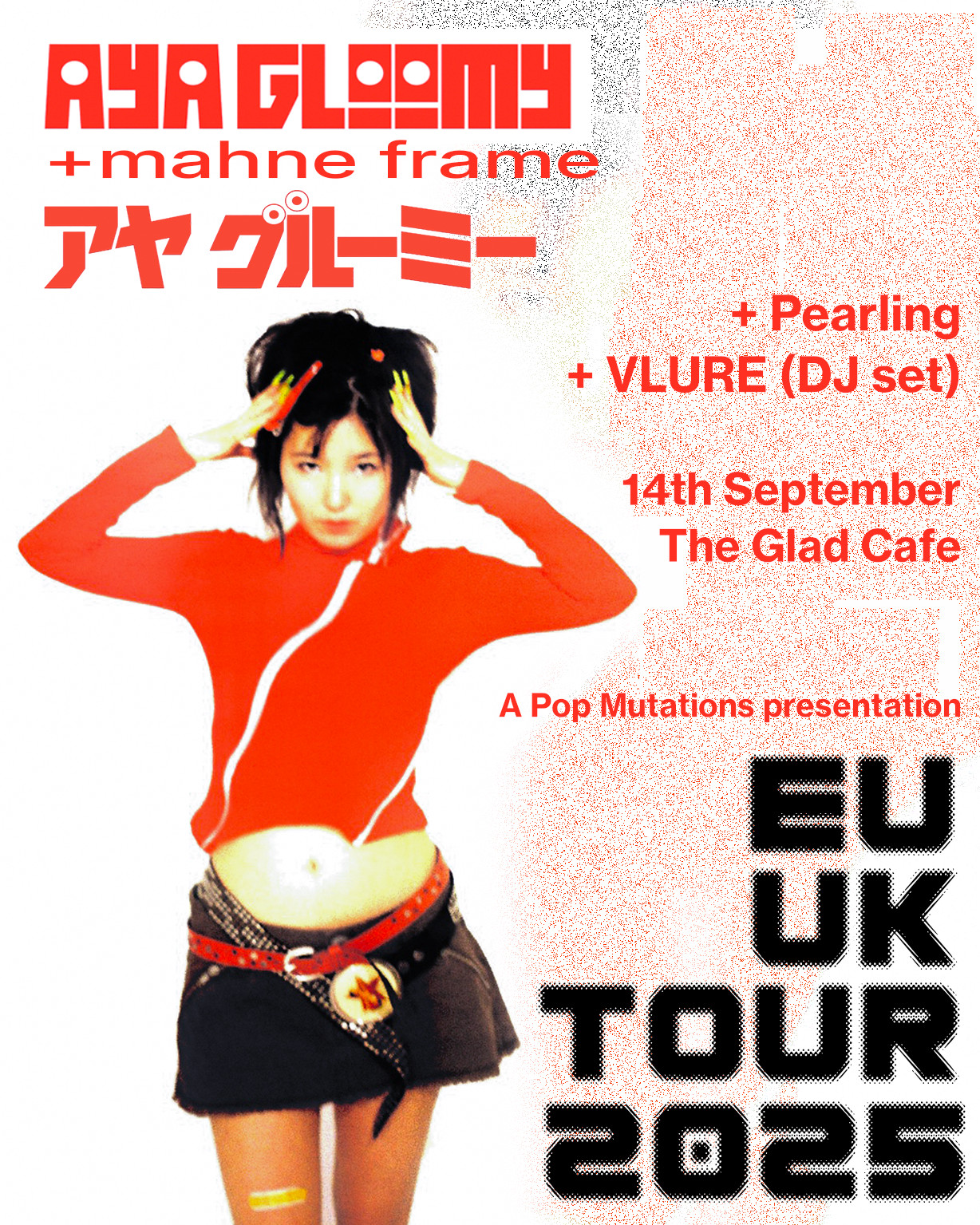 Pop Mutations presents: Aya Gloomy + Mahne Frame + Pearling + VLURE (DJ set) Sunday 14th September The Glad Cafe 18+ Self-produced and from Shinagawa, Tokyo, Aya Gloomy, has been conspicuously world-building in the Eastern hemisphere since 2018. Her wildly hooky pop melodies an