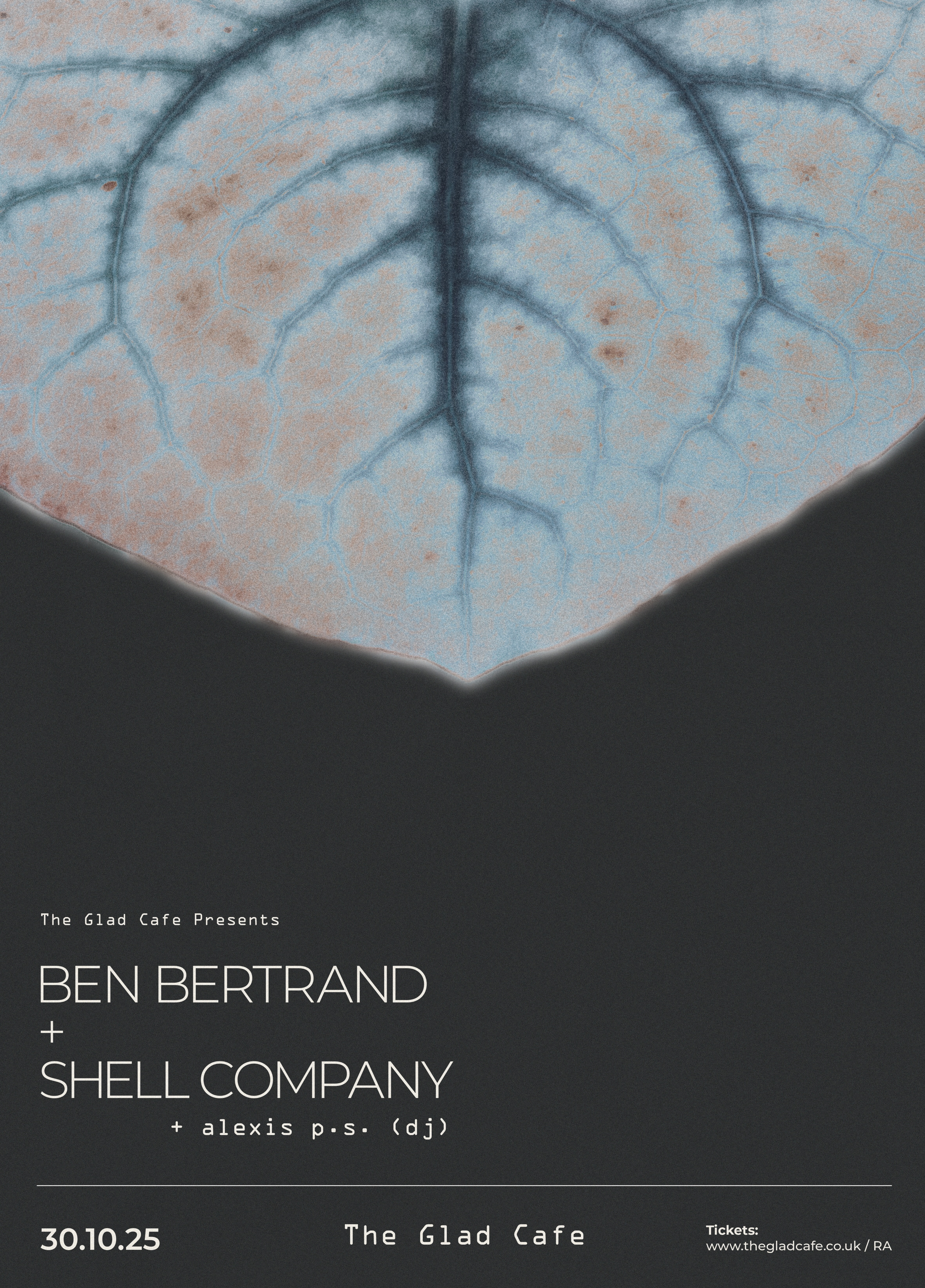 The Glad welcomes experimental composer Ben Bertrand (Stroom) + Manchester/Glasgow trio Shell Company (new album coming out via Accidental Meetings) + alexis p.s DJ set. £12/£8(low income)