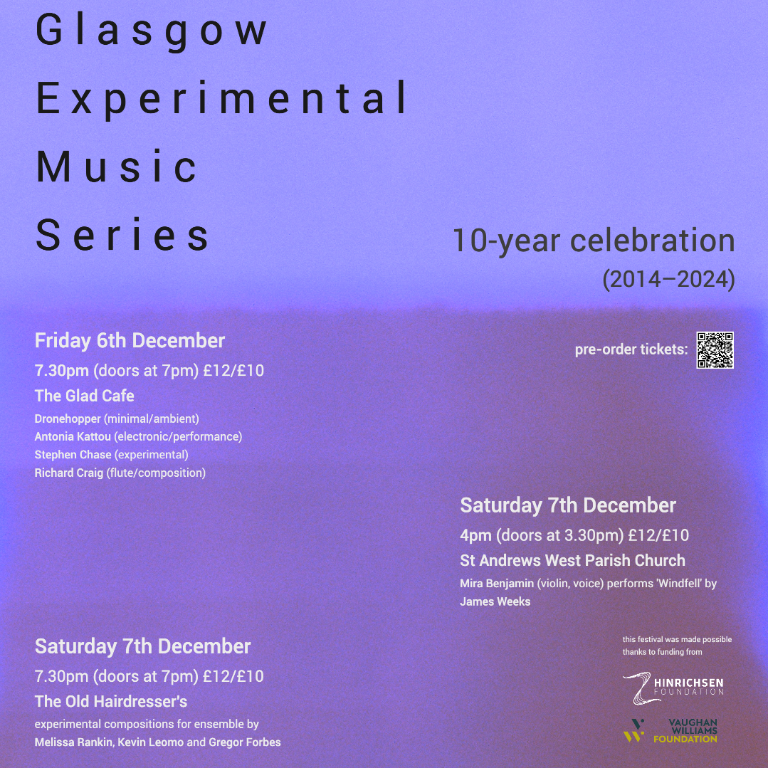 Glasgow Experimental Music Series 10th Anniversary gig at the Glad Cafe. £10/£12/ PWYC OTD