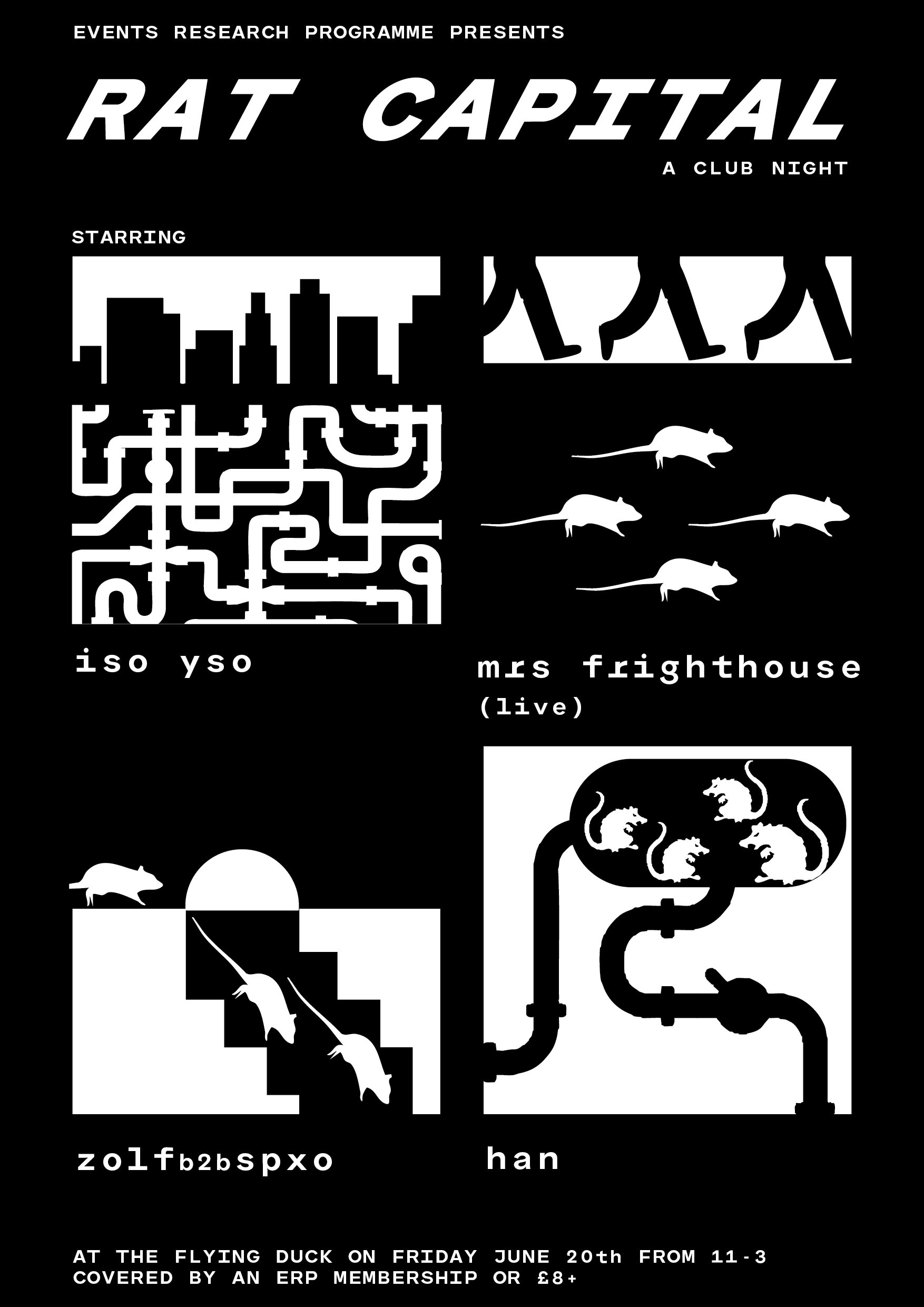 ERP presents: iso.yso / mrs frighthouse (live) / zolf b2b spxo / han for an underground clubbing moment. Covered by an ERP membership or £8+