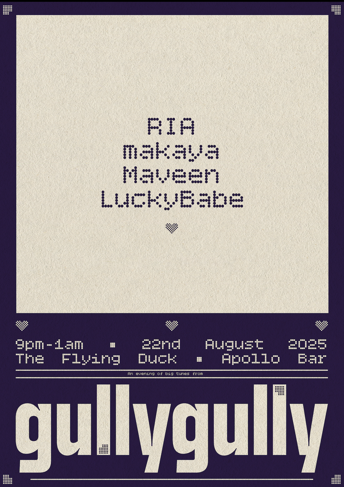 We've invited RIA & Maveen alongside our residents Makaya & LuckyBabe to takeover The Apollo Bar in The Flying Duck for our gullygully carnival warmup! Come thru and shake leg as we say goodbye to the summer sun.