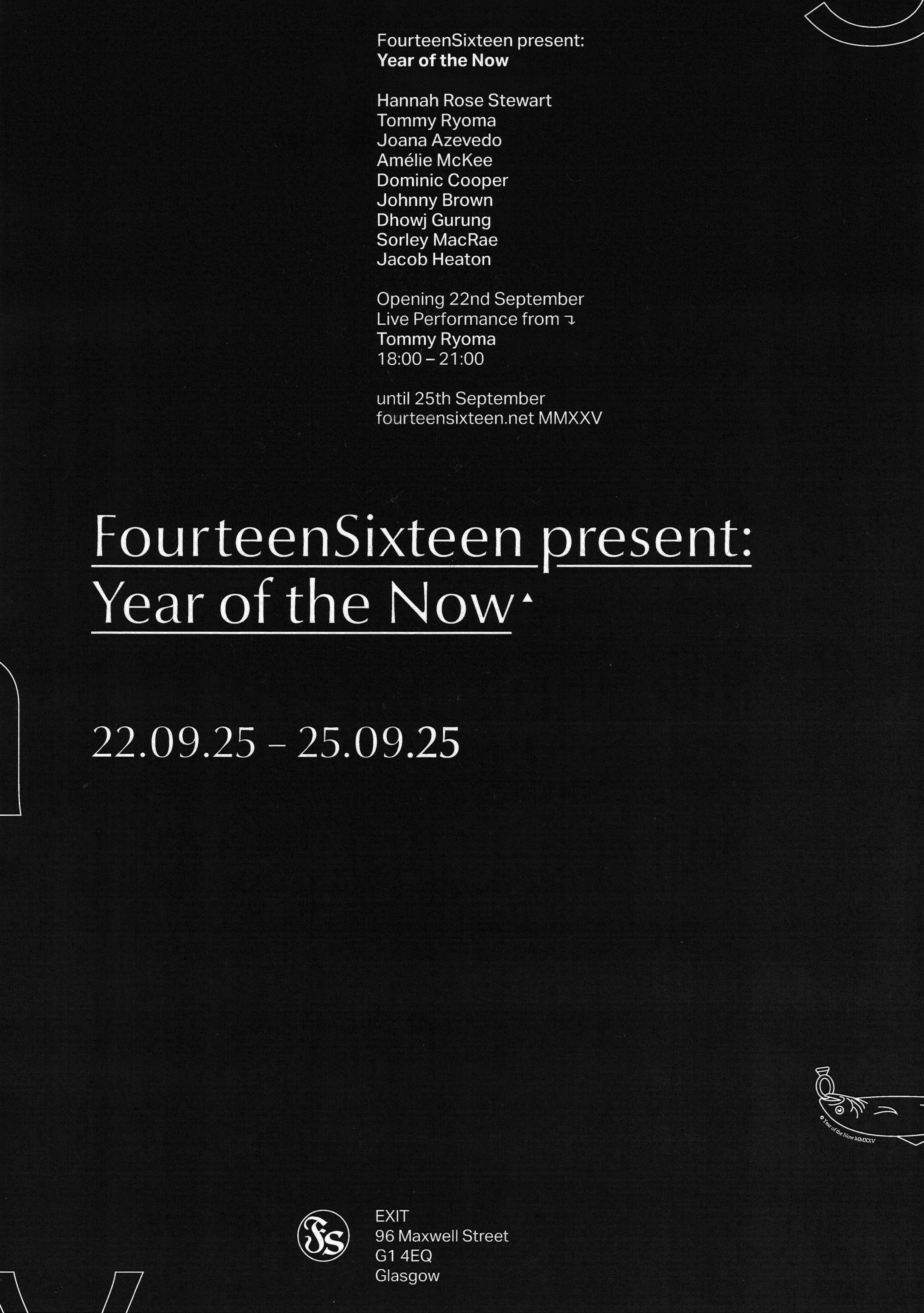FourteenSixteen present: Year of The Now, a group show celebrating 10,000 years of Quicktime Player and ESPN NFL Blitz Opening Monday 22nd September 18:00-21:00 Running 22nd –25th September, 96 Maxwell Street, G1 4EQ, Exit Glasgow