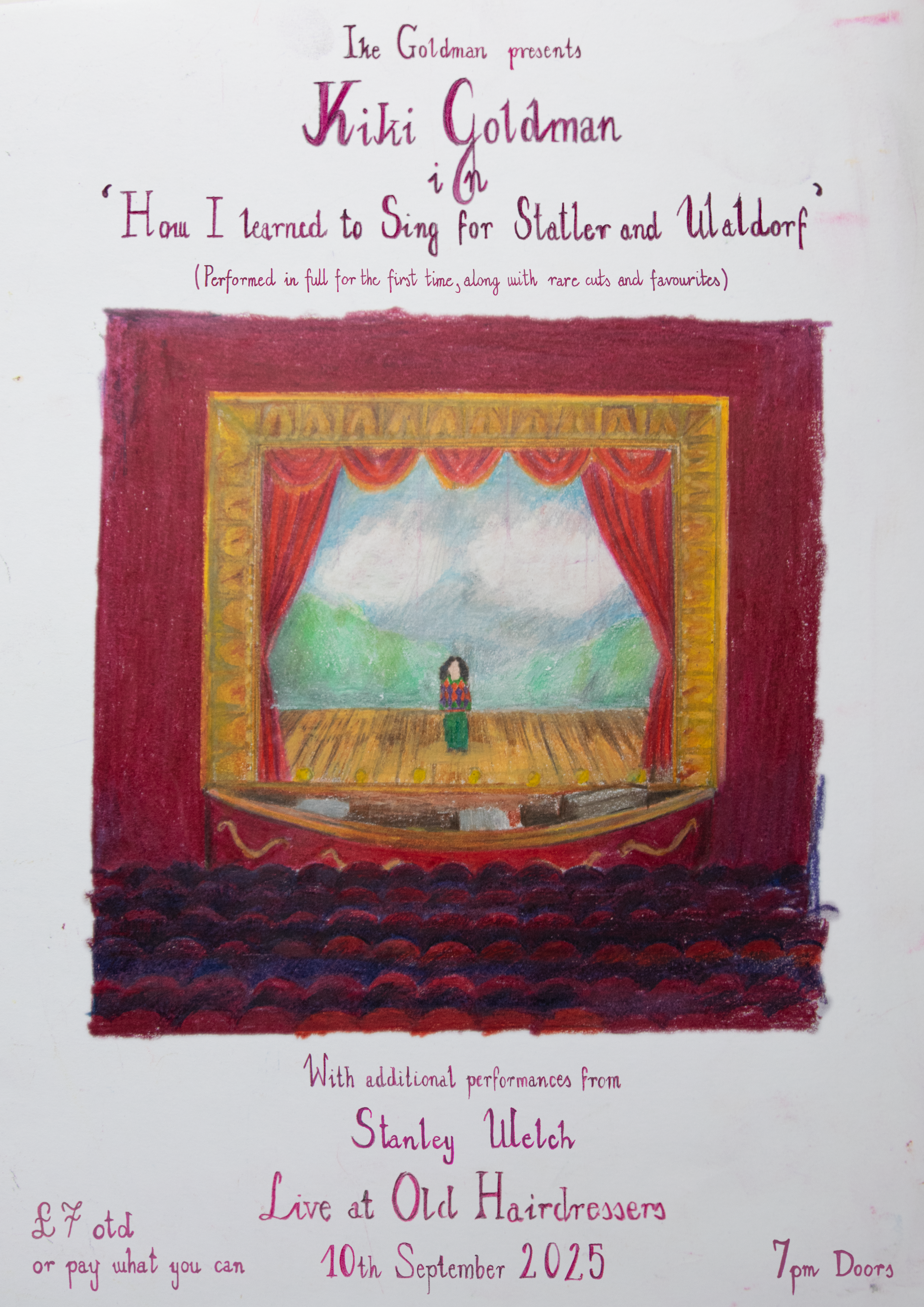 £7 on the door, or pay what you can Album Release show for ***Kiki Goldman in 'How I Learned to Sing for Statler and Waldorf'***