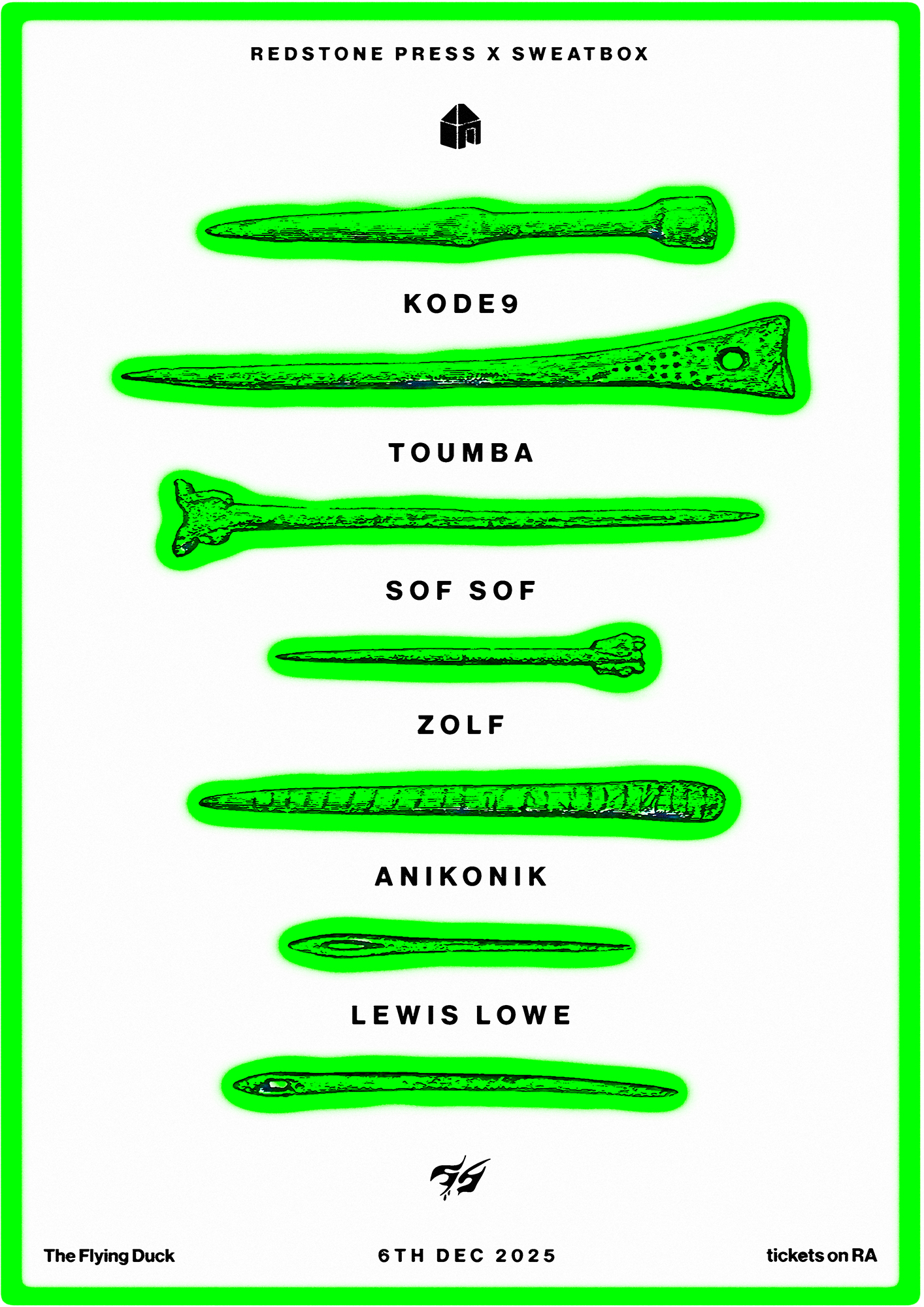 Redstone Press & SweatBox Pres. Kode9 | Toumba | Anikonik b2b Lewis Lowe | SOF SOF b2b ZOLF December 6th at the Flying Duck - 11PM-4AM. £10-15