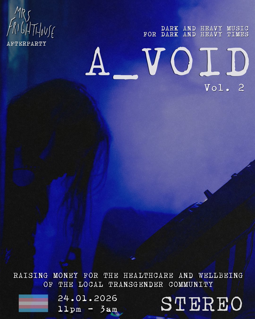 Luna Frighthouse's DJ set of dark and heavy music for dark and heavy times, in order to raise money for the healthcare and wellbeing of the local transgender community. £12 for club night & £15 for Club & Pre-club Mrs. Frighthouse Headliner gig beforehand.