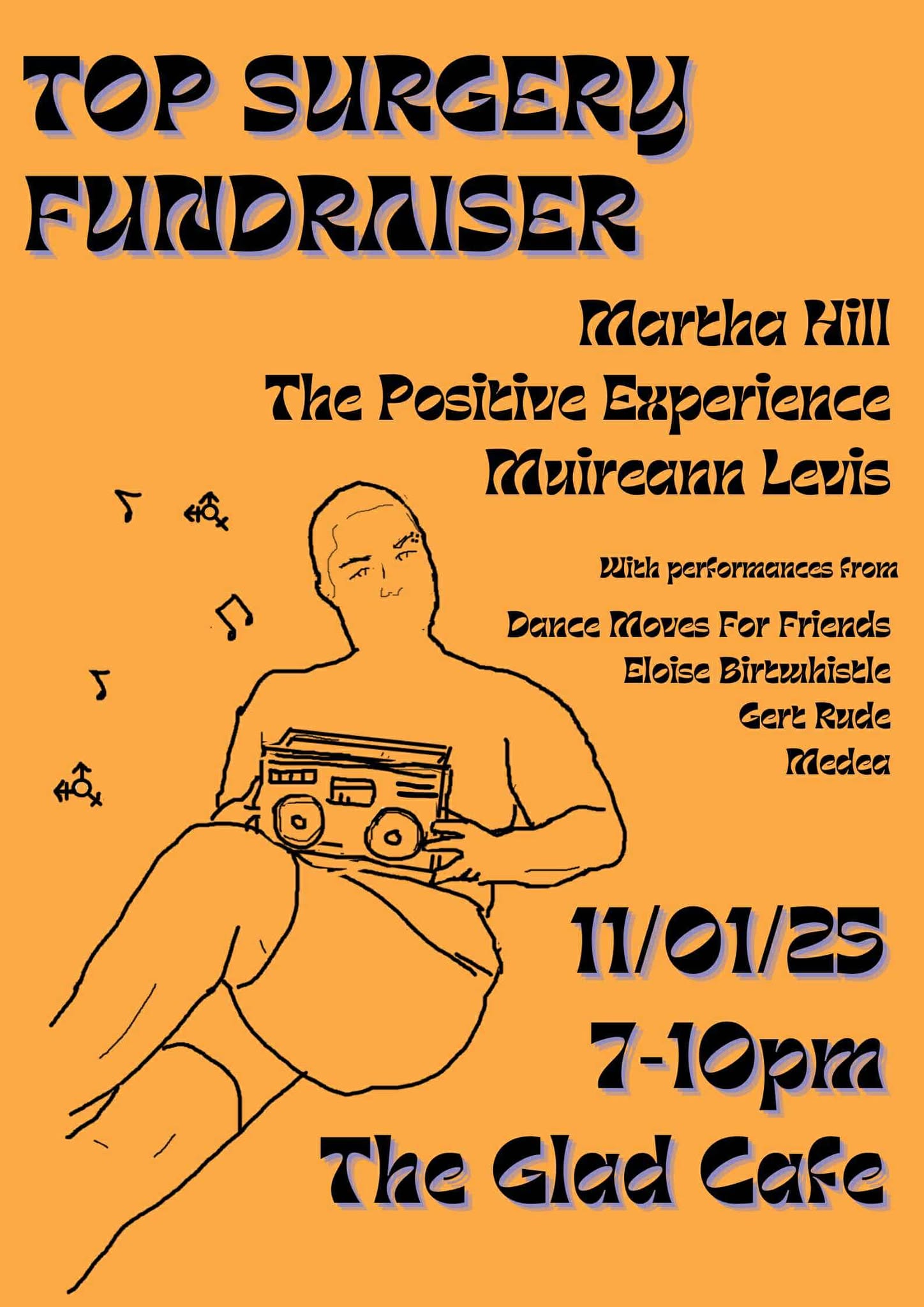 Join us at The Glad Cafe for an evening of music, poetry, and performance to help raise funds for Ren Oisín's upcoming top surgery. Tickets are sliding scale, no one turned away for lack of funds!