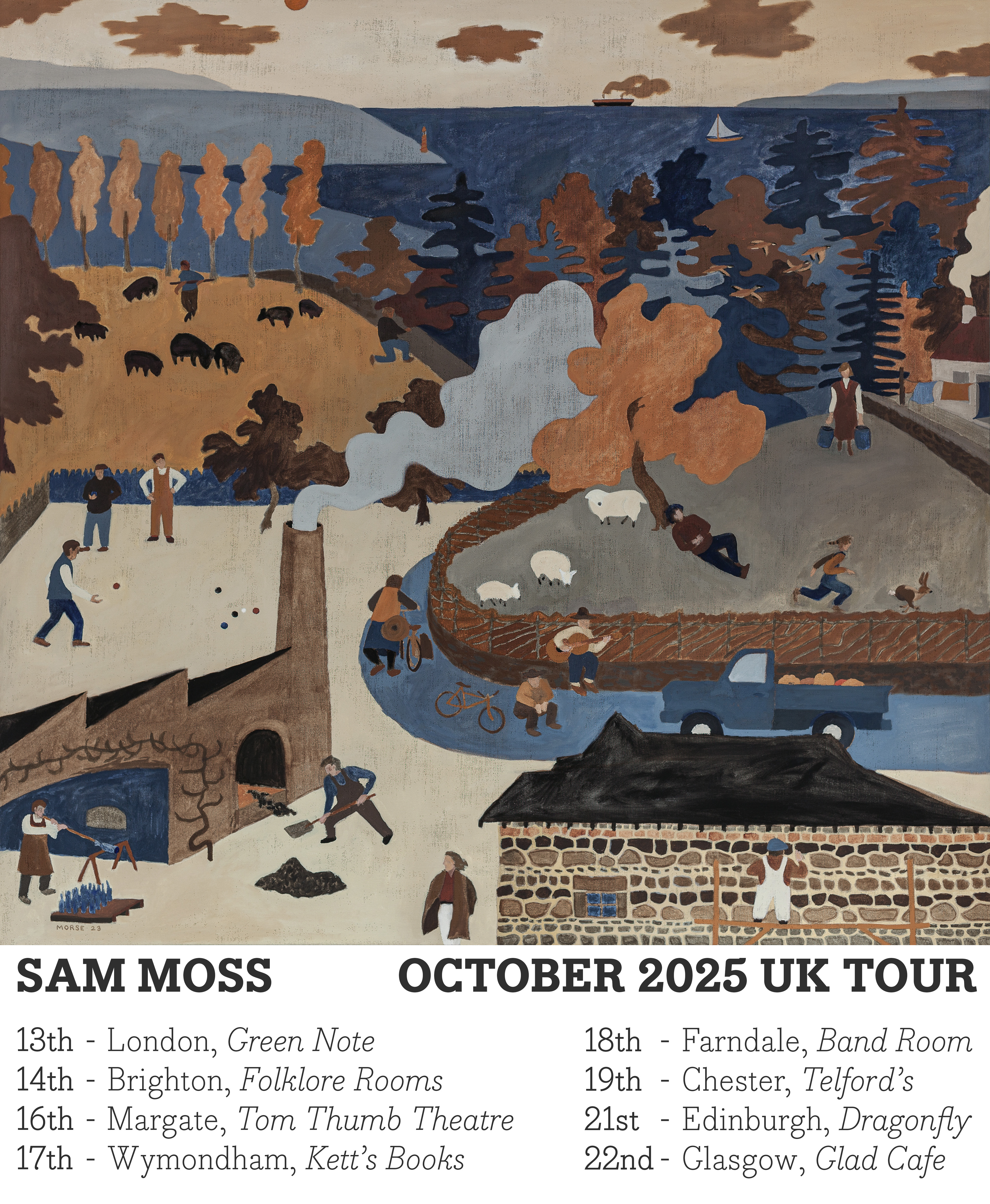 Sam Moss is a musician based in Staunton, Virginia. He has played hundreds of shows around the country and shared bills with Jake Xerxes Fussell, Joan Shelley, Diane Cluck, Doug Paisley, and others. Quinie is a Scottish singer who sings traditional song in Scots language.
