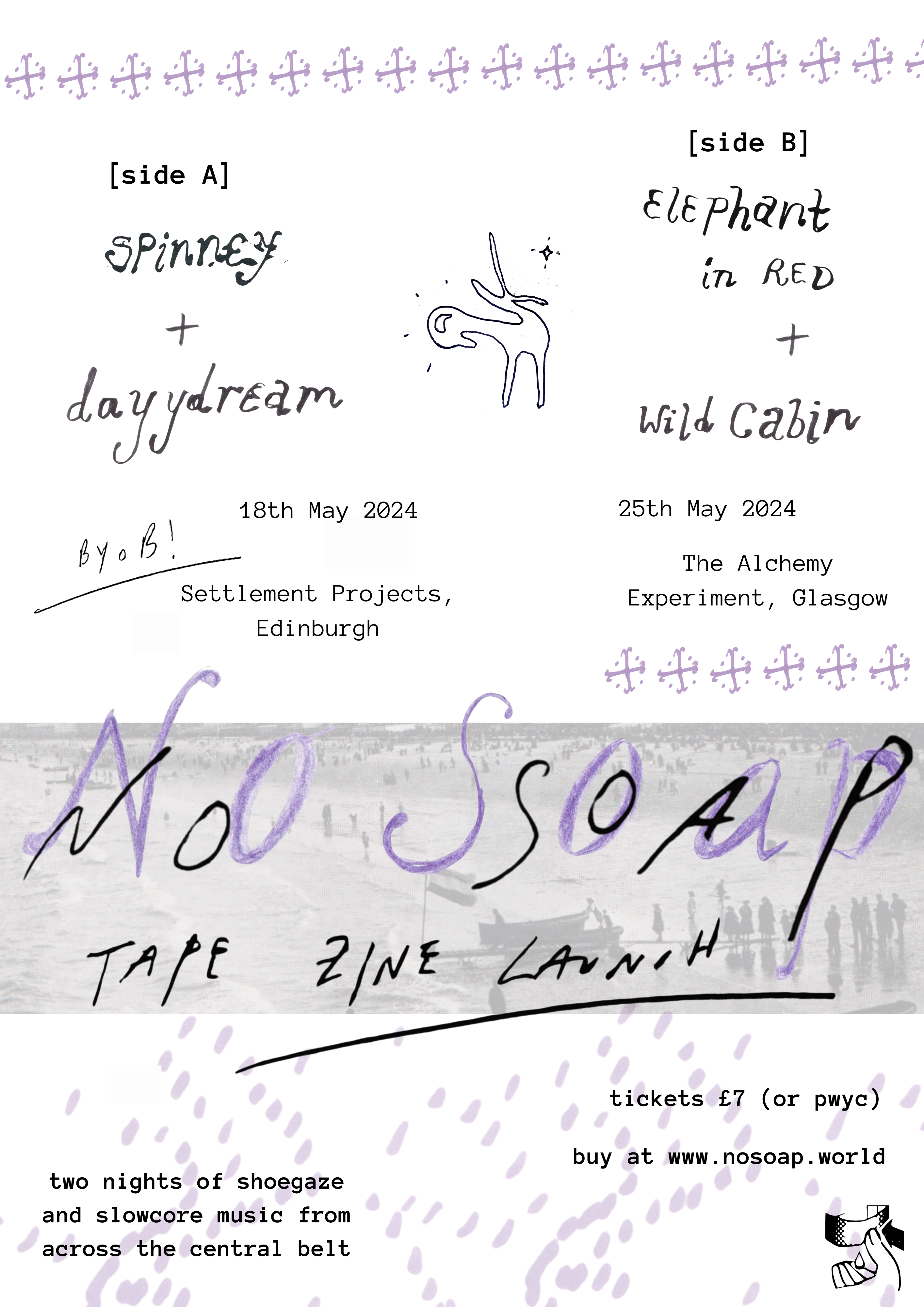 No Soap presents: NS01 Edinburgh Launch [side A], a new tape zine made in collaboration between 4 slowcore and shoegaze groups from Edinburgh and Glasgow. £7 - available at www.nosoap.world (nobody turned away for lack of funds - email [email protected] to reserve pwyc)